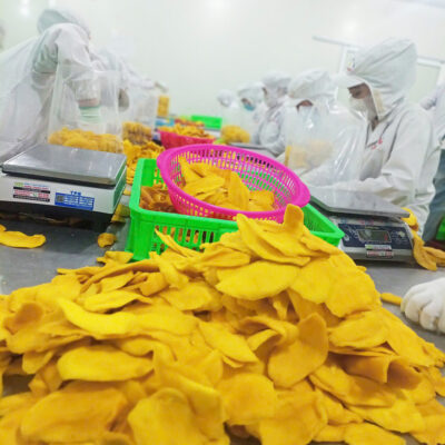 - At the factory, mango will be cold-dried using modern and advanced technology and machinery, ensuring food hygiene, safety and keeping the taste as well as color of the mango.